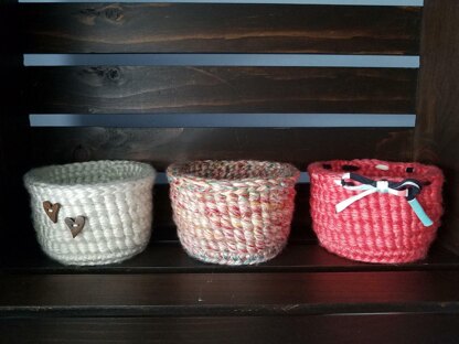 - The pattern creates a very simple basket leaving room for different embellishments such as buttons and ribbons to make them unique.