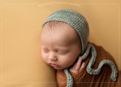 This fingering weight Simple Bonnet with Wide Ties is knit flat and knits up in about two hours. It requires knowledge of basic knit, purl and knitting two stitches together.