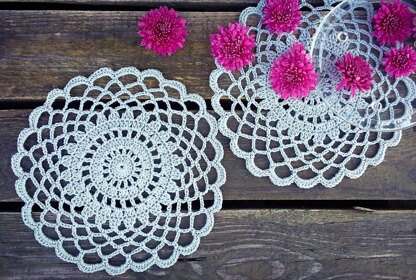 The doily you can make by following this pattern will be approximately 24cm (9,5 inches) in diameter.