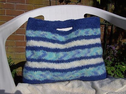 This is a versatile bag pattern that can be easily adapted to making a felt bag to suit any purpose. You could even add ribbon in as you knit to jazz it up!