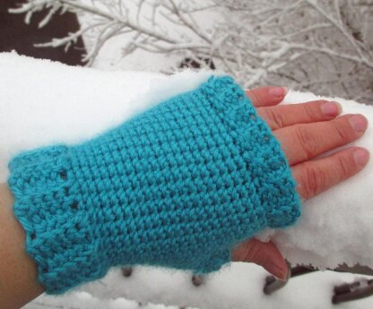 This is an easy crochet fingerless mitts pattern. The pattern uses single crochet stitches and a ribbing adds texture.