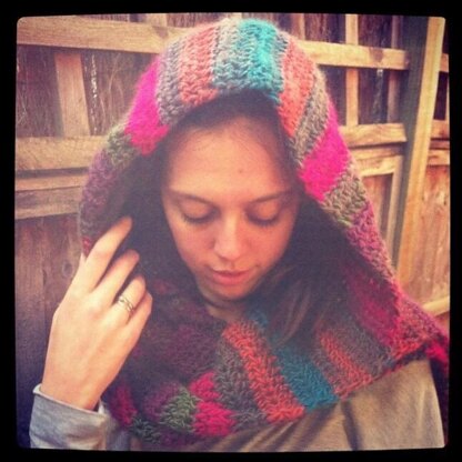 Really easy beginners pattern for an effective hooded scarf.
