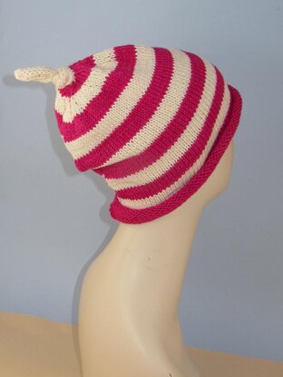 This is my Simple Stripe Topknot Roll Brim Slouch Hat. This is a very simple hat to make yet the end result is quite stunning. This range of hats has been specially designed for summer wear so the yarns chosen are all cool to wear like cotton and bamboo. Its worked flat on 2 normal 4 mm needles and can be made in any dk (8 ply) yarn of your choice. The knitting pattern provides full written instructions for 4 sizes, XS (baby), S (child), M (teen/ small woman), l (woman/man) and there are step by step photos to help you with the simple makeup. You can buy this knitting pattern here as an immediate pdf download.