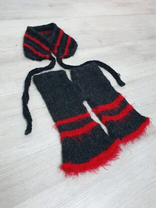 This cosy and versatile set includes a pair of wrist warmers (fingerless gloves) and a matching ear warmer—perfect for keeping warm during colder months.