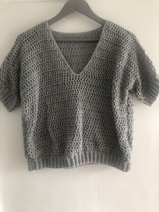 This simple and easily constructed v neck crochet top is crochet flat and seamed together with the sleeves done in the round.