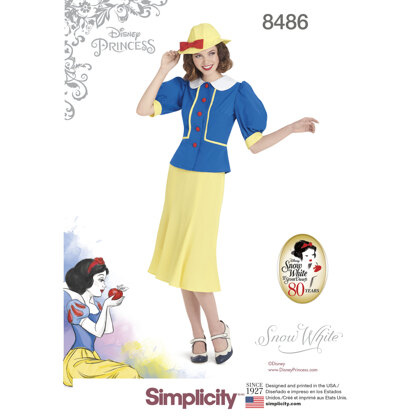 Disney's vintage inspired Snow White two piece dress and hat. As Snow White celebrates her 80th anniversary we present this classic 1930s women's two piece dress and hat with bow. Hat in three sizes S(21"), M(22"), L(23"). Disney for Simplicity.