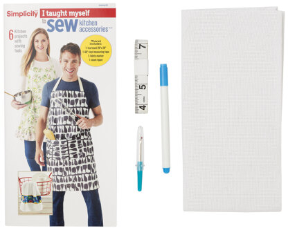 Get a great introduction to sewing with the Simplicity I Taught Myself To Sew - KITCHEN ACCESSORIES. The kit includes 6 project ideas with a variety of sewing tools to help you; including: 1 Tea Towel 20" x 28", 1 60" Tape Measure, 1 Fabric Marker, 1 Seam Ripper