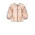 Button down top has collar and sleeve variations. Views A and B have balloon sleeves with elastic on cuffs. View A has round collar and optional waist darts for top. Views B and C have pointed collars. View C is short sleeve.