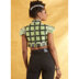 Edgy historically-inspired lined tops have back zipper. Cropped tops have jewel neck with or without stand collars, flange or puffed sleeves and trim, and contrast overlay options. Basque top has square neck, peplum and puffed sleeve with slim buttoned lower sleeves.