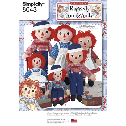 Simplicity Raggedy Ann & Andy Dolls 8043 - Paper Pattern, Size OS (ONE SIZE) is a Sewing pattern by Simplicity, available as a Paper Pattern and includes instructions in English, Spanish. Super fun to make, this pattern could be your next masterpiece!