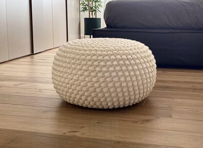 This pouf is fun to make, it works up very quickly and is perfect to be used as a seat, a table and a footrest when needed.