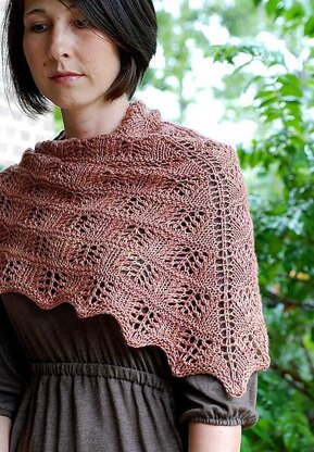 These shawls are simply pretty and pretty simple to knit. One easy but stunning lace pattern stitch is worked in your choice of two different triangular shawl shapes. The single pattern stitch is worked top-down, so you can keep knitting until you’re ready to stop.