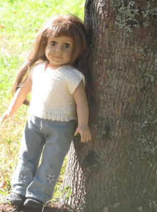 This is a simple little top, sized to fit your little one's 18" doll such as American Girl Dolls. My doll seen here was a generic 18" doll, found in a catalog, and has the same proportions as the AGD (and seems to be a perfect match for the doll sold at Michael's).