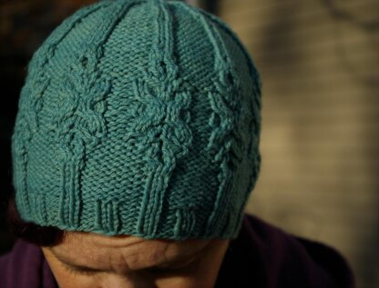 This hat combines two of my favorite design elements: ribbing and cable medallions. The result is a snug beanie that stays on and keeps the head cozy.