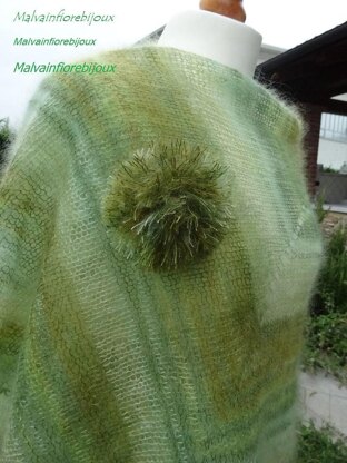 Large top-down shawl knitted in mohair wool with beautiful colors in shades of green. The semi-octagonal shape is unusual and very enveloping. Simple but snappy work. Of course you can also knit it in the desired size