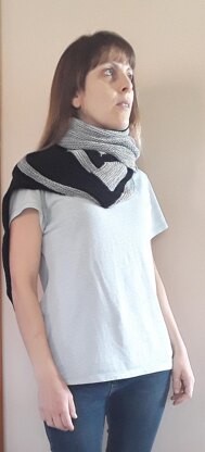 This is a modular shawl. It is a process that will not bore you because you have to change the color or the direction of the work often, but at the same time it is not complex because everything is worked in garter stitch! This shawl has a triangular and very elongated shape. It is worked from the central triangle and then gradually the side tips will be worked.