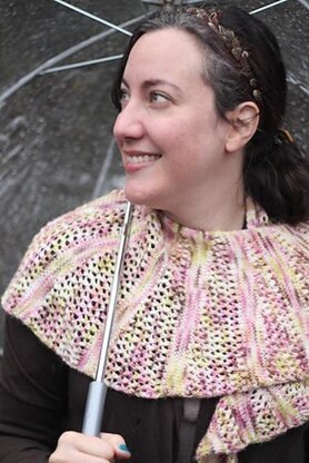 Yarn: 380 yards fingering or sport-weight yarn. Sample shown in one skein of Madelinetosh Tosh Merino Light (100% superwash merino wool; 440yds per skein), colorway Shanily (Twisted's custom color). Gauge: 24 sts = 4 inches (10 cm) in stockinette stitch. Needles: US #4 (3.25 mm) straight or 24” circular needle - or size to get gauge. Piece is worked back and forth. Notions: Tapestry needle. Skill level: Advanced beginner. Size/Finished measurements: One size fits most. Inside edge: 45”. Outside edge: 100” Center: approx. 80”. 12”deep at center back. Measured after blocking.