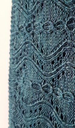 Sinusoid is a beautiful, lightweight little cowl. It combines cables and lace for a lovely wavy pattern that is an interesting but calming knit. It is knit in the round, with twisted rib borders on either end that flow into the pattern. The size is easily customized to your preference. Knit in fingering weight yarn, it is light and flowing, and lets you use those beautiful variegated single skeins hiding in your stash.