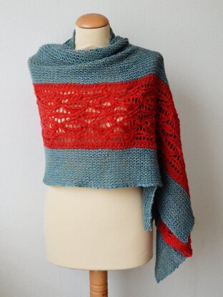 This stole is knitted back and forth, starting with the cabled lace panel. Next, stitches are picked up and knit on the long sides of the lace panel for the garter stitch sections. Also, the instructions for the lace are provided both charted and written out.