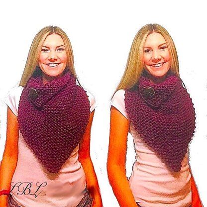 Wear it buttoned up around the face or folded asymmetrically, it is adorable either way. This fashionable piece will be a huge hit in cooler weather. Knit flat and in the round, this triangle garment features a unique style with the button closure and oversize fit. An intermediate pattern, skills required for knitting this piece are yarn over increases, transitioning from working flat to round (and vice versa) and knitting button holes.