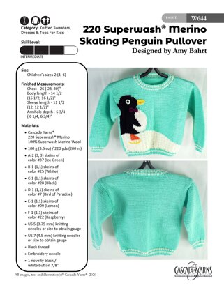 Skating Penguin Pullover in Cascade Yarns 220 Superwash® Merino - W644 - Downloadable PDF is a free Intermediate Knitting pattern by Amy Bahrt, available as a Downloadable PDF and includes instructions in English. Super fun to make, this pattern could be your next masterpiece!