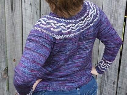 Yarn: Tempting Ewe Yarns Ewe So Perfect DK, 75% Superwash Merino/25% Nylon, 246 yards/100g, 4(4, 4, 5, 6, 6) skeins main color, one skein contrast. Sample knit in Intergalactic and Bare.