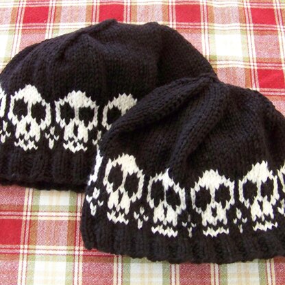 True story: I had some extra black and white yarn sitting in my stash. It was mid-October and I was ready for Halloween. I have over 30 nieces and nephews. I wanted to make something cool for them to wear that time of year. So… I designed this skull cap for my nephew Korbin. Well, all the other kids wanted one as well. That fall I knitted up over 40 skull caps for my nieces, nephews, their children, and a few of our friends.