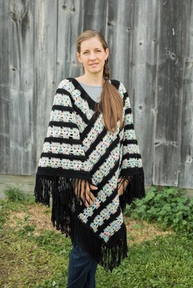 Ladies' one size fits all poncho made with worsted weight yarn.