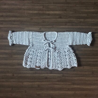 SKY CROCHET BABY CARDIGAN CROCHET PATTERN PDF - A beautiful vintage style lacey baby matinee jacket | sweater in size approximately 0-3 months. Made all in one from armhole up then armhole down so no sewing of side seams. Ties at front for easy closure.