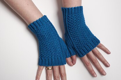 These fingerless mittens are crocheted entirely in slip stitches. The textured stitch pattern makes them warm and squishy, the ribbed part ensures a good fit.