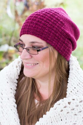 When I got home I looked at my quickly taken photos and found myself entranced by the waffle of the windows. I loved how the eye moved up step by step until you were left with blue skies. I grabbed some solid Aran weight yarn and created the Skyscraper. The hat is made from a simple knit and purl pattern.