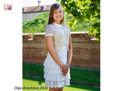 Sleeveless jacket Irish lace crochet. Modern crochet Irish lace pattern . A detailed pattern for all crochet motifs - a graphic diagram, a photo and a verbal description of each crochet row. PDF file for 54 pages Design work by Starostina Olga.