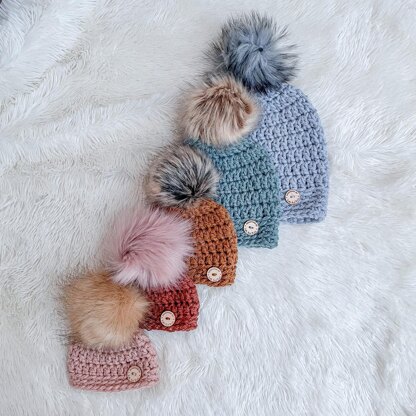 Description: A little chunky, a little slouchy, & your go to beanie for fall, winter, and transitional temps! The Slightly Slouchy Pom Beanie is a very beginner friendly pattern that works up so quickly, you will be making these on repeat for yourself and all of your favorite people!