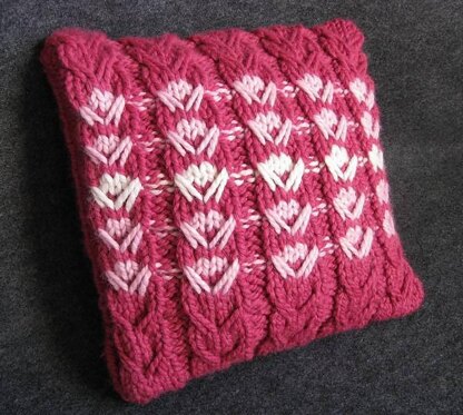 Use this simple slip stitch pattern with simple color changes (you work with one color at a time, no stranded knitting) to bring flowers to bloom for this quick knit 14" x 14" pillow.