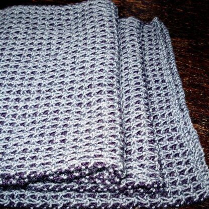Dieser Schal entstand, um einen geliebten gewebten Schal zu ersetzen. Daher das kleinkarierte Muster auf der Außenseite. Selbst auf der Innen- seite sieht der Schal nicht typisch nach Strick aus. Der Schal ist sehr weich und warm ohne dick zu sein. Da er praktisch kraus rechts gestrickt ist, ist er ein leichtes Projekt für Anfänger, mit gerade genug Abwechslung, damit sich auch geübte Stricker nicht langweilen.