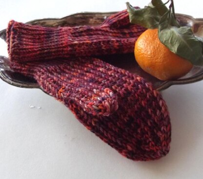 Slipped stitches add texture and blend beautifully with the ribbed hems. Slipped stiches as the hem edges help create snug cuffs that don’t flare. The pattern can be feminine or masculine depending on the colors you choose, and works equally well in solid or variegated yarns. Decreases are carefully calculated to line up with slipped stitch pattern with minimal interruption at the top of the mitten.