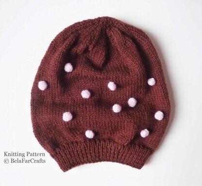 This is an easy project for beginners using 1 ball of yarn, basic stitches and single-pointed needles. The slouchy hat features decorative bobbles which are made separately.