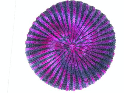 I design many of my patterns for classes or workshops. This hat worked well for getting the optimum number of color switches in a 2 1/2 hour session. I was pleasantly surprised when the varigated yarn created a lovely swirl effect.