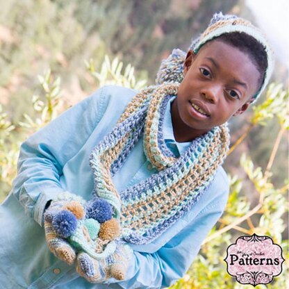 This hat and scarf set are easy patterns for a beginner crochet artist to make something fun. This pattern will fit boys ages 6-14 years of age. The hat has a giant pom-pom on the top and the mesh striped scarf also has a fantastic pom-pom detail. Instructions and templates to make the pom-poms are included in the pattern instructions.