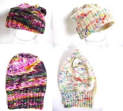 Knit up these cute little slouchy hats for a baby, toddler or child. All three sizes provided. Great project to use up your sock yarn.
