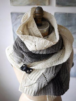 This super-cozy scarf or wrap is a treat to knit in a gradient of natural or hand-dyed shades and looks great in a solid color as well. Knit in one piece from side to side, the scarf begins with a long cast on, but knits up in a jiffy with just a few pattern repeats. An easy-to-knit mix of knit/purl texture and simple openwork stitches form a fabric that is universally appealing, which makes this project a good choice to knit now and gift later. This squishy, delicious scarf is an enjoyable knitter’s respite from a busy schedule, for beginners and experienced knitters alike.