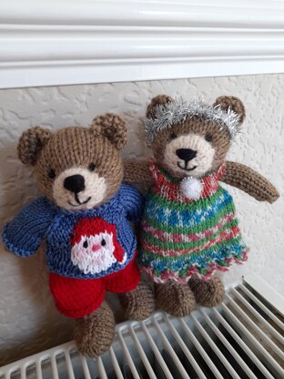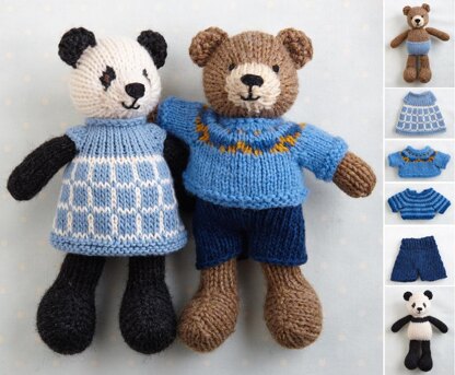 Included are instructions to knit a top-down plaid dress, a Fair Isle sweater or a striped sweater and a pair of shorts. There are also options for the design of the head including a single coloured bear (for a polar bear), and a Panda.
