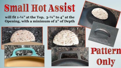 SMALL Hot Assist Cast Iron Pan Handle Cover Crochet Pattern. Do you love your cast iron dishes but tired of burning your hand? This pattern comes with detailed instructions with every step along with pictures for the more complicated steps. There is SO much helpful information for you to complete your own hot assist!! The hot assist are cheap, quick, and a super easy pattern to make that takes less than one ball of yarn. Listed separately are two other sizes.