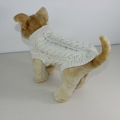 This is my Small Dog Cricket Sweater knitting pattern. This lovely design is a must for all small dogs. Its worked flat in any dk yarn on 4 mm needles . The knitting pattern provides instructions for a small size dog e.g. Chihuahua. You can buy this knitting pattern here.