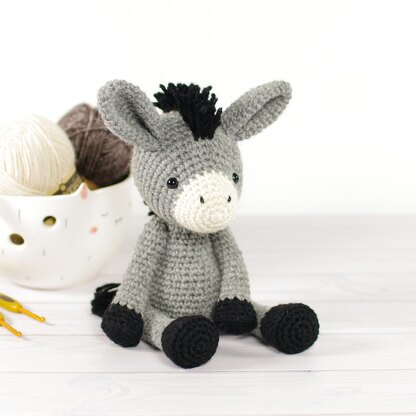 This written crochet pattern includes all the instructions needed to make a cute small donkey. Arms and legs are attached using doll joints (or buttons and yarn) to make them movable.
