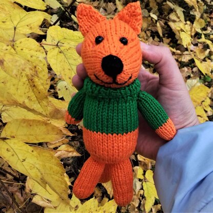This fox in a jumper is knitted in circle on double pointed needles. There are photos how to make it.