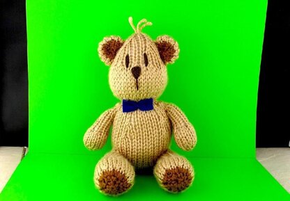 He is knitted on 2 needles with 8 ply (DK) yarn so even a beginner can make him.