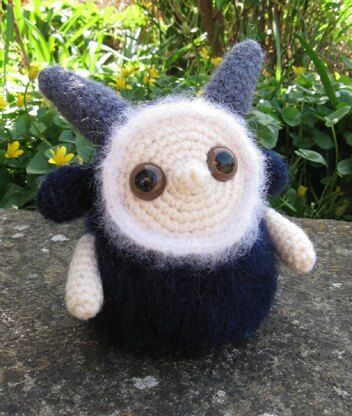 With this pattern you can crochet yourself a Small Spirit, a creature that can be made in various different ways. The photos show various Spirits that I have made, using the same basic design but with many variations. The pattern gives you full instructions on how to make a Spirit the way you want. You start with a body made with brushed mohair, add a simple face and arms, then you choose what kinds of ears, horns and other details you prefer. The pattern is written using US crochet terms, and the list of abbreviations includes the UK alternatives.