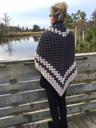 It’s amazing to me how a simple granny stitch can look so elegant. I wanted a simple shawl in neutral colors when I started this design. As it progressed, I was surprised at how classy it looked! I love how that happens with crochet. You just never know where it will take you. This is a classic granny shawl pattern that works up very quickly, and it’s super relaxing to crochet. It’s a large shawl (65”x34”) so you have plenty of coziness to wrap up in. You will need 3 skeins of Red Heart Soft Essentials in Charcoal, and 2 skeins of Red Heart Soft Essentials in Biscuit. Enjoy!