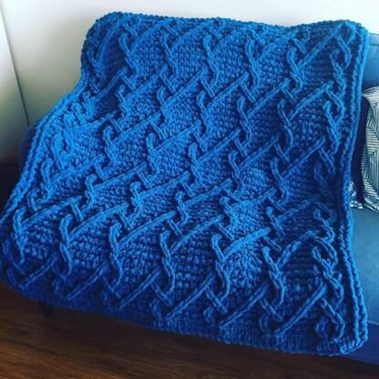 THIS IS A LOOP YARN FINGER-KNITTING PATTERN. The Snakes and Ladders Blanket Pattern is an abstract repeating pattern of cable squiggles and lines resembling snakes and ladders. NOTE: While this pattern is written for Alize Puffy yarn, UK knitters can substitute Bernat Alize Blanket-EZ yarn for a blanket of approximately the same size - you will only need 5 skeins.